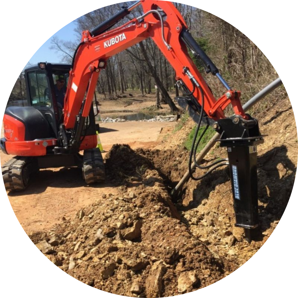 Foundation digging, retaining wall installation, utilities installation, grading, site prep, installation of sumps, driveway removal, stump removal, and more.